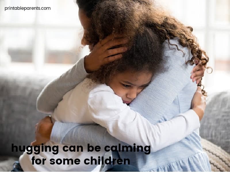 - Some children like to be held or gently squeezed to calm their bodies so try getting close to your child.