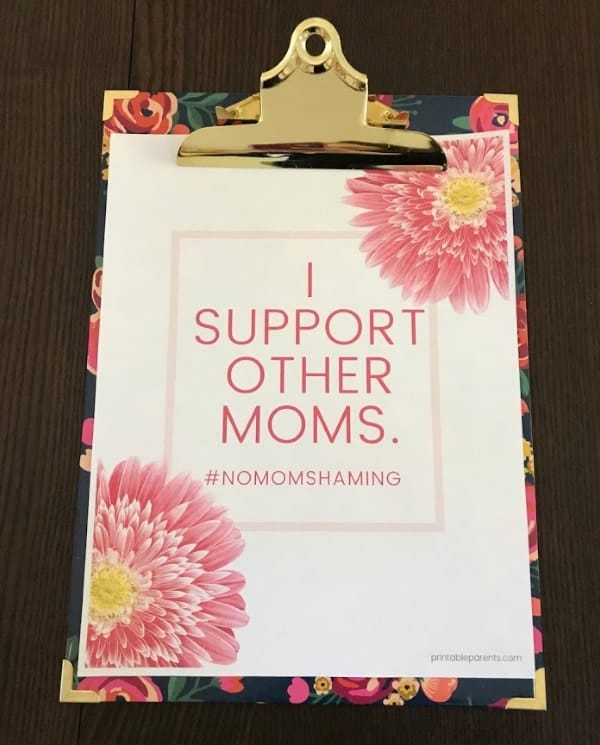 - Moms can decide to support other moms and commit to #nomomshaming. Get a free printable reminder.
