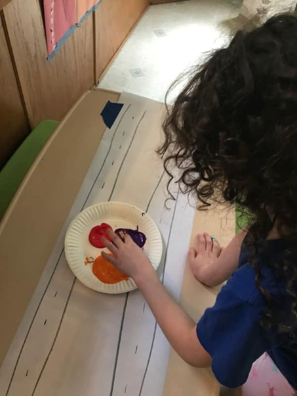 We’re also working on writing indirectly with activities like tearing paper, coloring, pom pom painting, and squeezing glue. These all develop the hand muscles that make it easier to write.