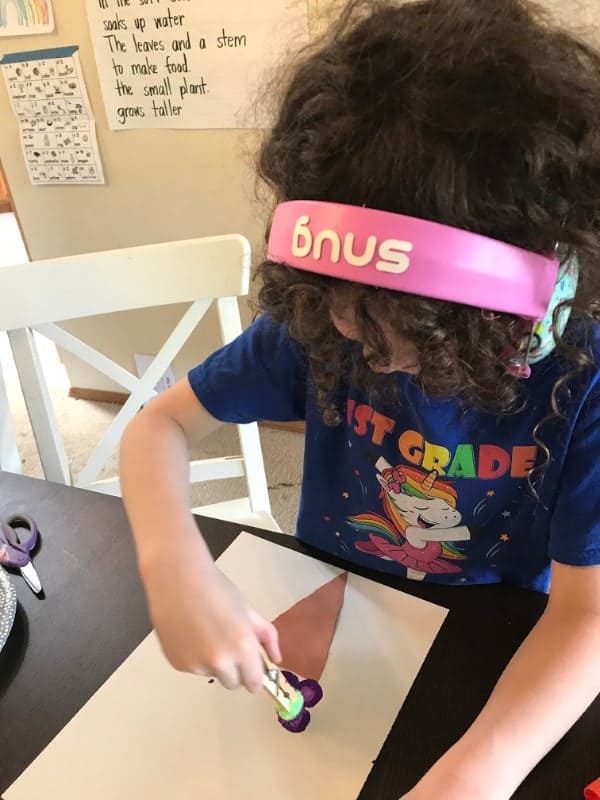 The Inspired Home shows us how to use construction paper to make rockets with your children’s name. Your children practice their scissor skills. Use Elmer’s glue to give their hands some squeezing practice and build those little muscles.