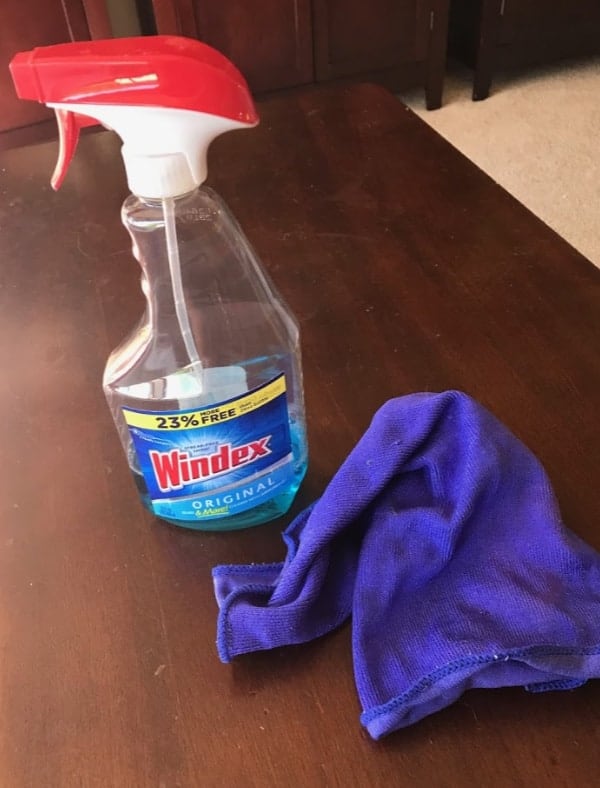I keep Windex and microfiber cloths in the laundry room where I can quickly grab them and wipe those hand prints. Windows is also a great chore to do with a kid you trust won’t spray the cleanser in their eyes or mouth.